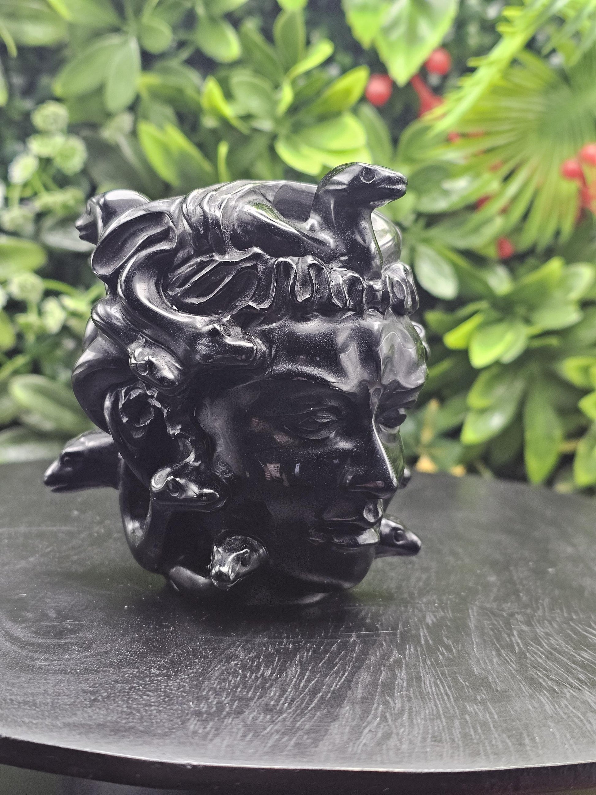 Beyond its aesthetic impact, this obsidian Medusa serves as a powerful spiritual tool. Obsidian is known for its protective properties, shielding against negativity and promoting self-reflection. Medusa‘s legendary gaze symbolizes the transformative power of facing one‘s fears and embracing personal strength.