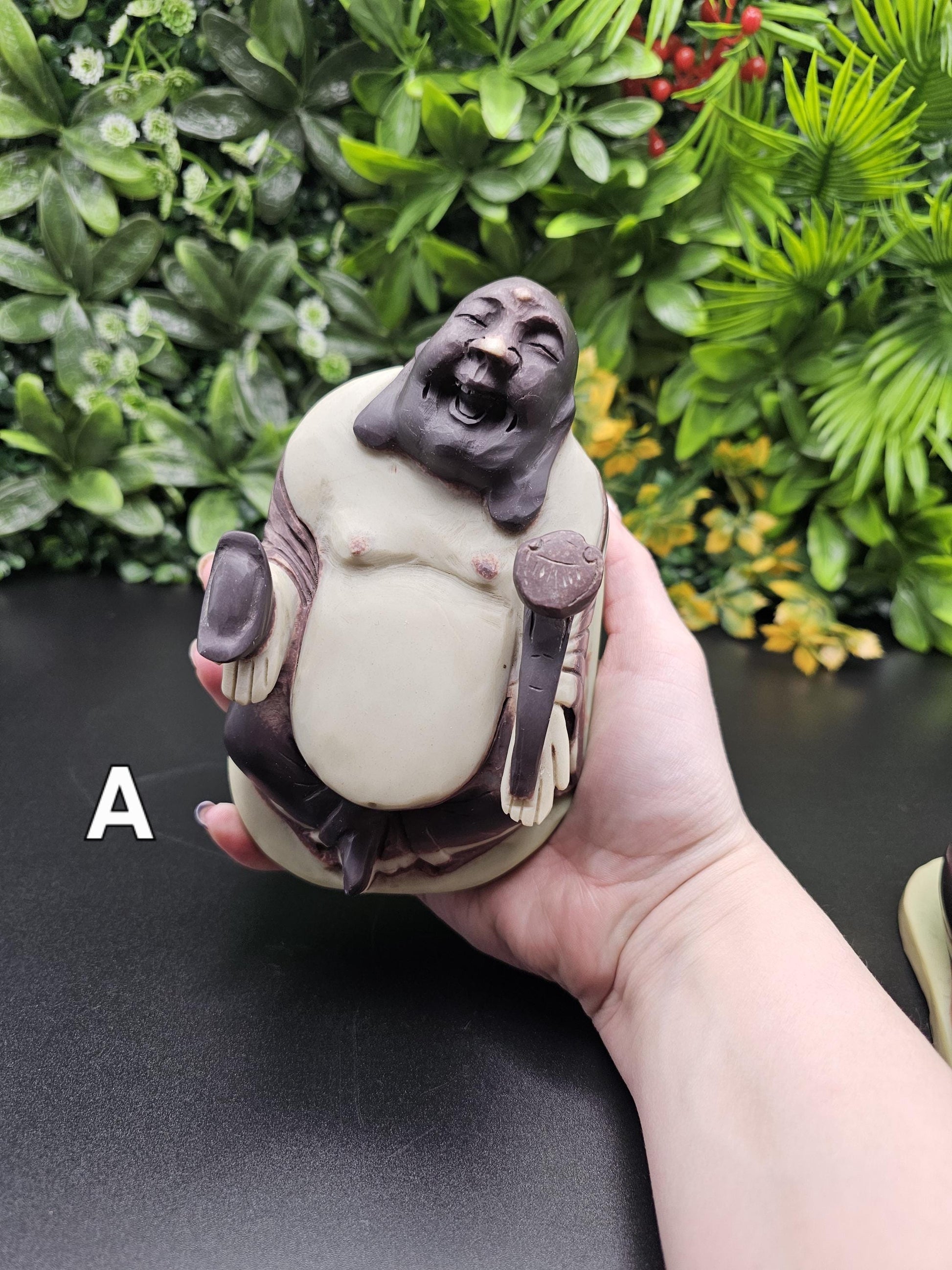 Introducing our stunning and substantial Buddha carvings, crafted from high-quality, natural Jade. These impressive pieces feature unique color patterns in shades of green and brown, making each carving a true work of art.