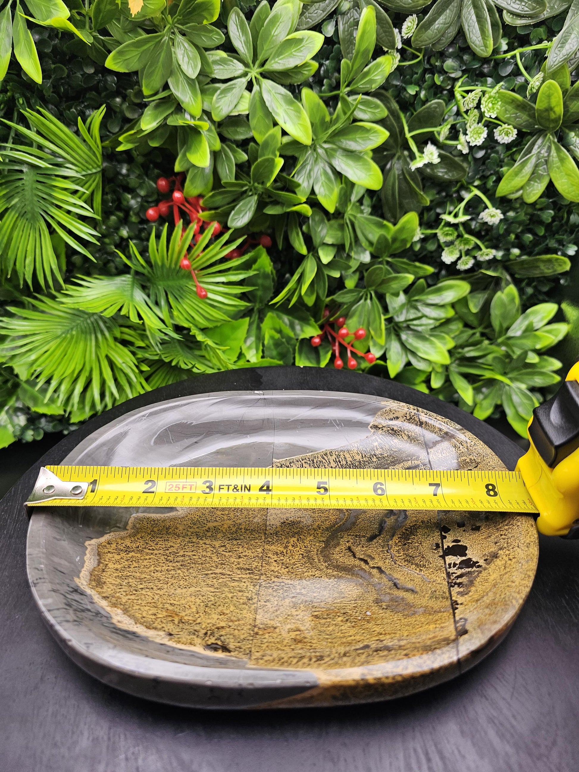 This versatile plate is perfect as a decorative centerpiece on your coffee table, adding a touch of natural elegance to your home decor. It can also be used as a stylish tray or bowl to hold small items, such as keys, jewelry, or decorative accents.