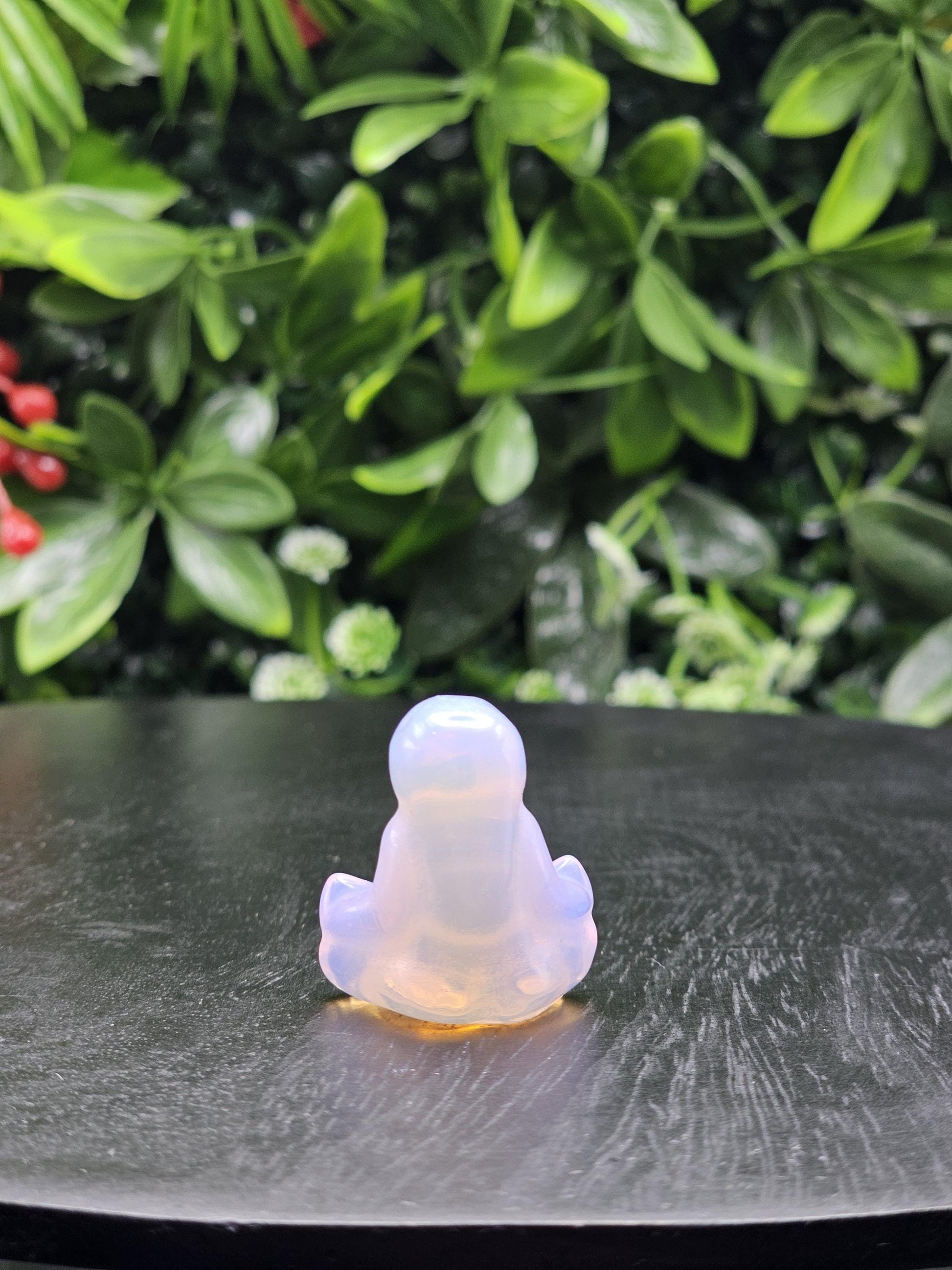 This charming opalite meditation bunny mini carving is perfect for enhancing your spiritual practice. With its serene energy and delicate craftsmanship, it makes an ideal addition to any crystal collection or a thoughtful gift for mindfulness enthusiasts.